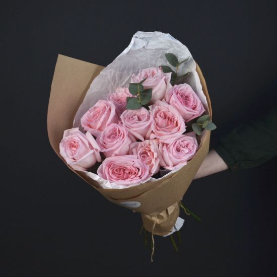 Букет пионовидных роз Pink O'Hara и эвкалипта S