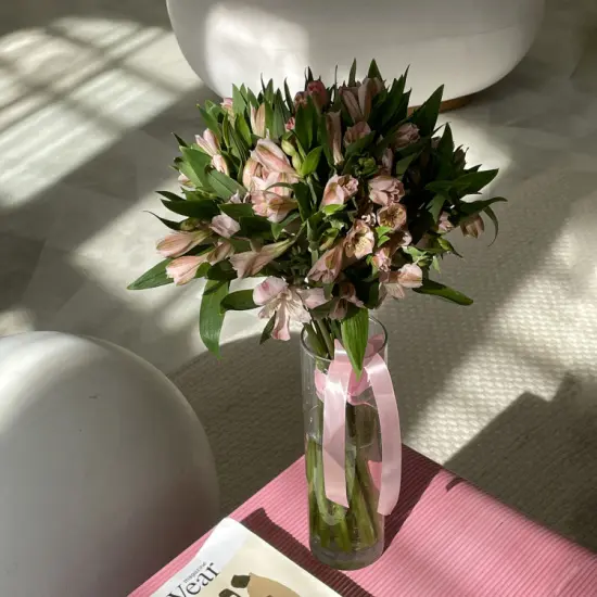 Интерьерный букет из 15 розовых альстромерий