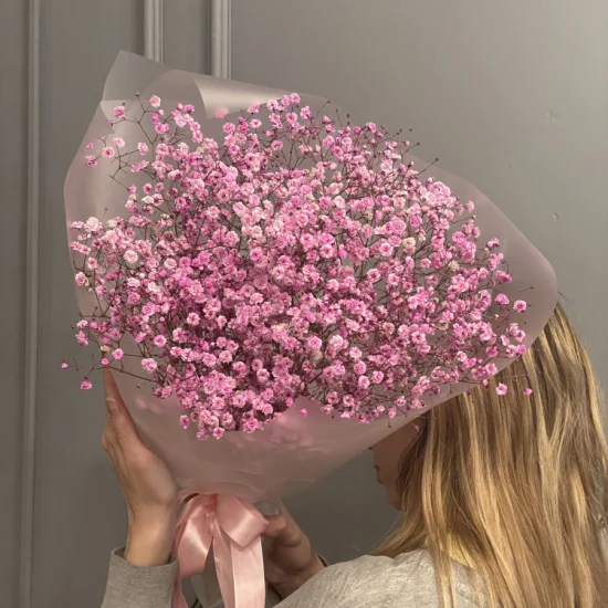 Букет из 9 веточек душистой гипсофилы розового оттенка, украшенных стильной упаковкой, поднимет настроение и приятно удивит.Гипсофила - стойкий и пышный цветок, на веточке которого множество маленьких шариков-соцветий, имеющих приятный медовый аромат.
