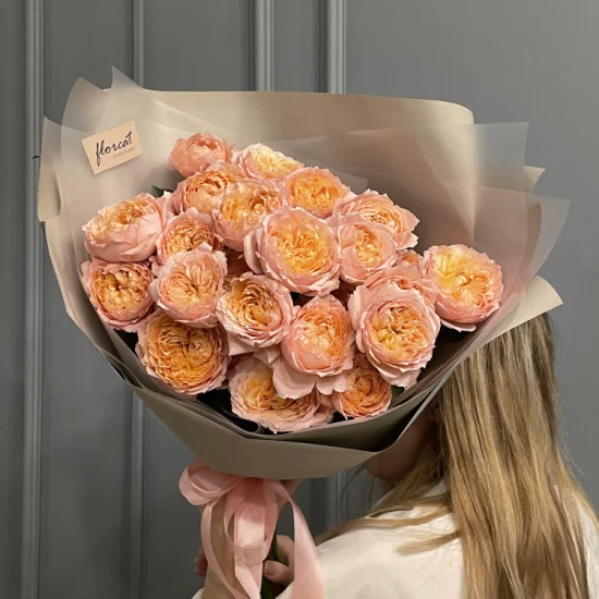Букет из 7 кустовых пионовидных роз сорта Juliet изящного розово-персикового оттенка поможет выразить ваши нежные чувства.Размер букета из 7 кустовых пионовидных роз Juliet - около 30 см 6800