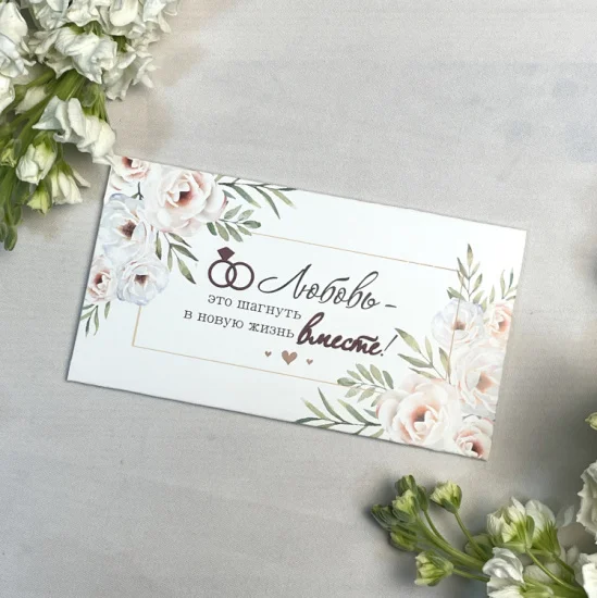 Очаровательная открытка-конверт с декоративными элементами, созданная специально для ваших поздравлений, нежных слов и комплиментов.