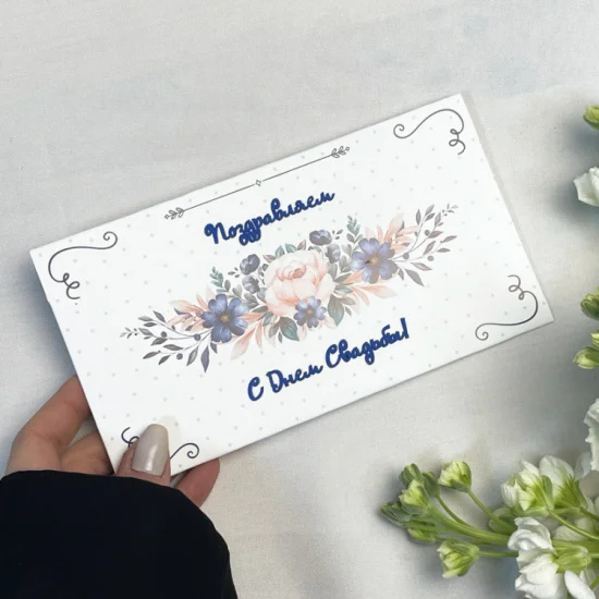 Открытка-конверт ручной работы "С Днем свадьбы" белая