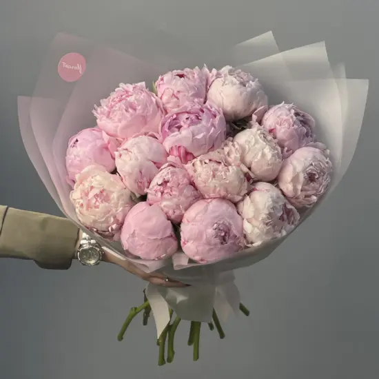 Букет из 15 розовых пионов