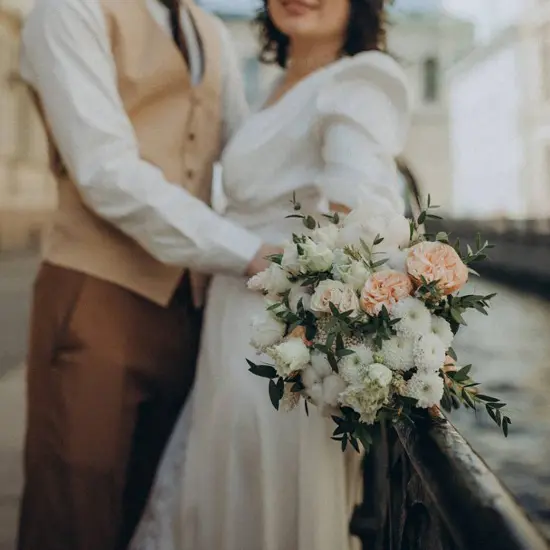 Возможны разные стили исполнения – от классических композиций в белых тонах до ярких контрастных сетов, от нежных пастельных гамм в стиле рустик или бохо до современных минималистичных решений с акцентом на фактуру зелени. Цветочные композиции могут быть дополнены тканевыми драпировками, декоративной подсветкой, гирляндами, а также фруктами или овощами. Появились еще более неожиданные идеи и решения? Реализацией займутся флористы и специалисты Florcat.