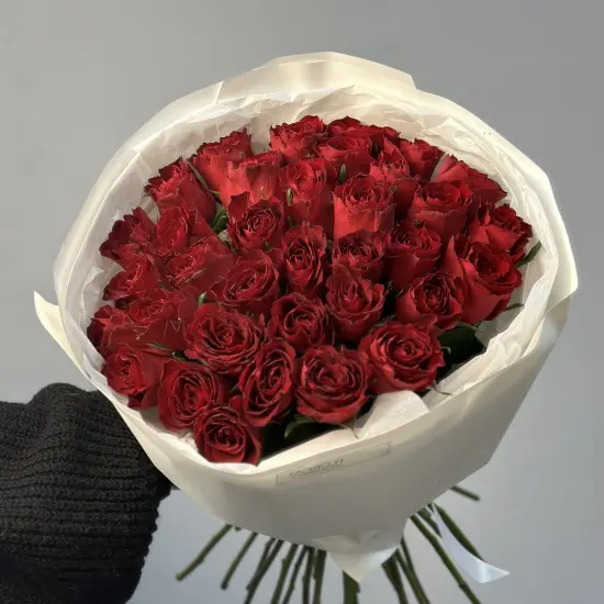 Диаметр букета из 35 красных роз высотой 50см (Кения) - около 40 см 5410