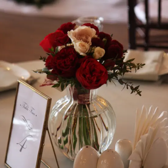 Букет на стол гостей в алых оттенках