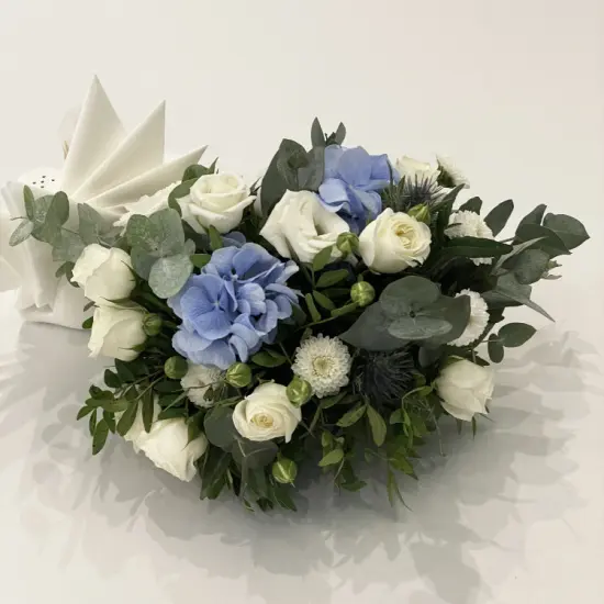 Голубая композиция на стол гостей на поддоне