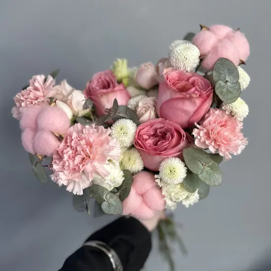 Легкость и нежность букета передают романтичное настроение торжества – будто утро, наполненное мягким светом и свежестью. Переливы оттенков, игра фактур и естественная элегантность делают его не просто аксессуаром, а частью свадебной истории. Такой букет станет выразительной деталью, подчеркивающей индивидуальность момента.