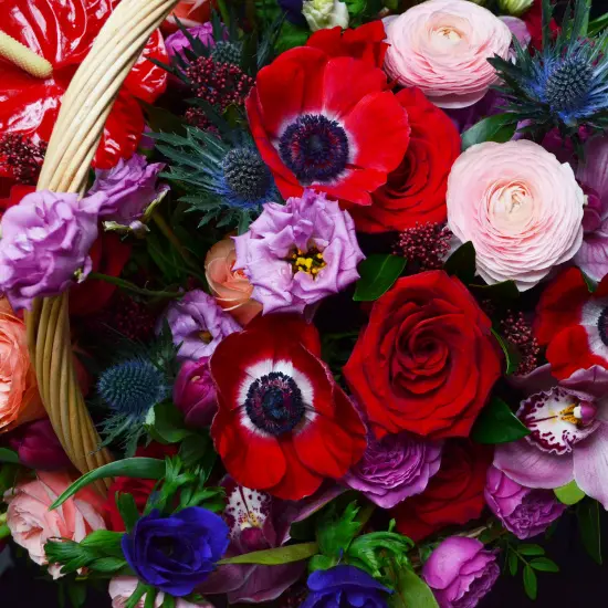У нас есть все, что нужно, чтобы порадовать прекрасных дам. В каталоге вы можете найти объемные букеты, а также купить цветы в шляпной коробке или корзинке.
