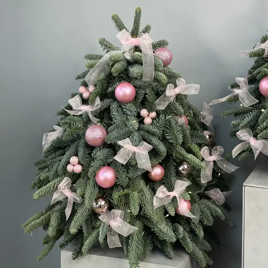 Пышная ёлочка из натуральных ветвей датской ели, украшенная воздушными трендовыми бантиками и новогодним декором в нежных оттенкахВысота ёлочки - около 60 см