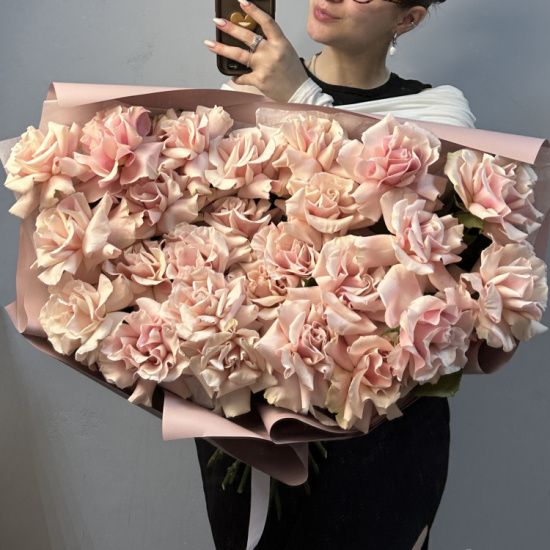 Размер букета из 25 французских роз - около 70 см