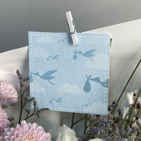 Нежная голубая открытка станет трогательным дополнением к поздравлению с выпиской из роддома. Сдержанная палитра оттенков – от небесно-голубого до лазурного – создает ощущение чистоты и свежести, а изящные элементы дизайна – например, силуэты аистов, звездочки или облака – подчеркивают тематику события. Открытка выполнена в классическом формате, удобном для подписи, и идеально подходит для теплых пожеланий новорожденному и его родителям.