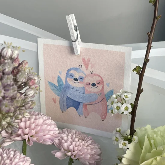 Медлительные ленивцы на открытке словно приглашают замедлиться, насладиться моментом и отдохнуть от суеты. Их расслабленные позы и безмятежные мордочки создают ощущение уюта и гармонии – как будто получатель оказывается в тенистом тропическом лесу, где время течет неспешно. Такой подарок передаст тепло и заботу, напомнит о важности отдыха и простых радостей. Открытка станет приятным сюрпризом для тех, кто ценит спокойствие и умиротворение.