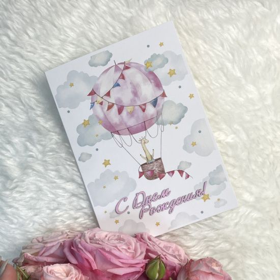 Розовая открытка ручной работы "С Днем рождения"
