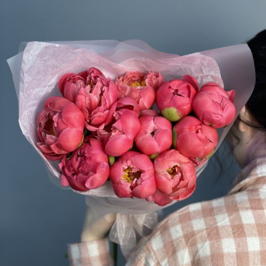 Букет из 15 пионов Coral Sunset