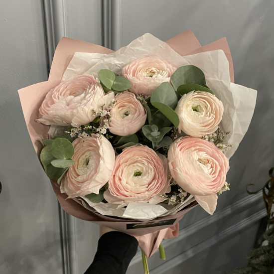 Букет из 7 ранункулюсов и лимониума