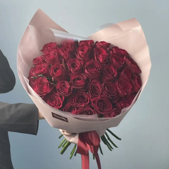 Букет из 35 роз красного оттенка, привезенных прямиком из солнечной Кении. Плотные бутоны красных роз в раскрытии становятся очень пышными.Нежный букет из 35 роз подарит любой девушке отличное настроение, приятно удивит и запомнится надолго!