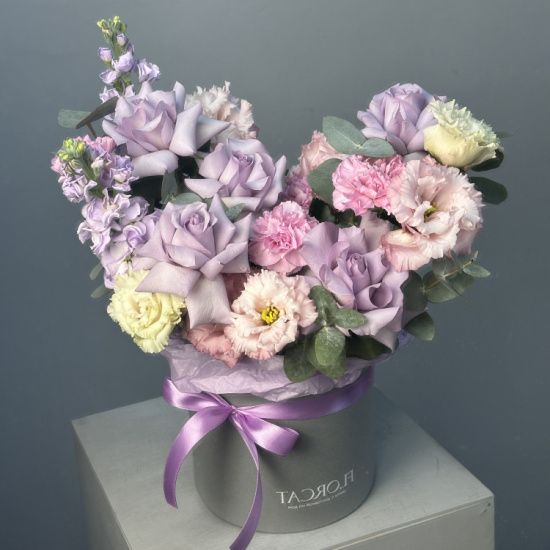 Букет в шляпной коробке Пурпур S