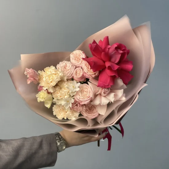 Флористы работают с сезонными материалами, сохраняя стиль и гармонию букета. Оттенки и размеры цветов могут незначительно варьироваться, но качество и эстетика остаются неизменно высокими. Каждая композиция собирается вручную с вниманием к деталям.