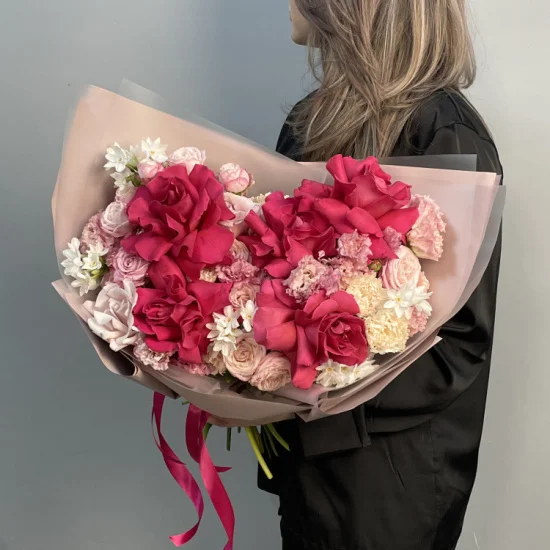 Каждая композиция собирается вручную с учетом доступных цветов – оттенки и размеры могут незначительно варьироваться. Однако стиль, качество и общее впечатление остаются неизменными: флористы тщательно подбирают материалы, сохраняя задуманную эстетику.
