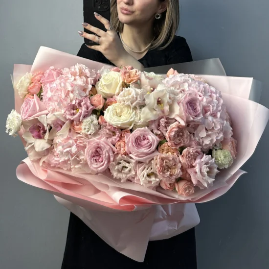 Каждый экземпляр собирается вручную с учетом текущей сезонной палитры – оттенки и пропорции могут варьироваться, но гармония и качество остаются неизменными. Флористы тщательно подбирают аналоги, сохраняя первоначальный замысел и визуальную целостность букета.