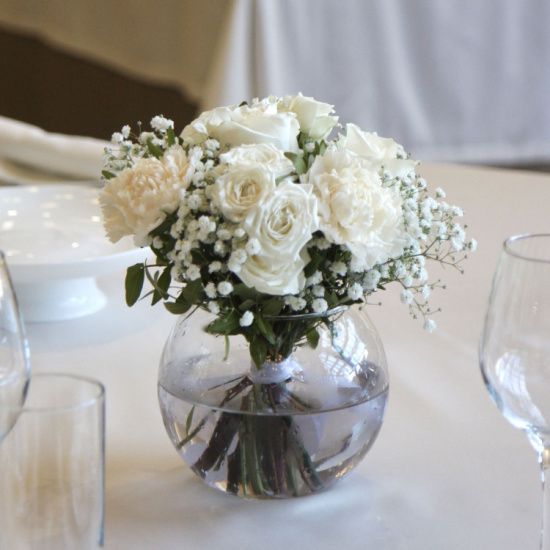 Нежные оттенки роз гармонично сочетаются с воздушными облаками гипсофилы, создавая ощущение легкости и изысканности. Ажурные гвоздики добавляют графичности, а зелень придает свежесть – композиция выглядит утонченно, но без излишней строгости.